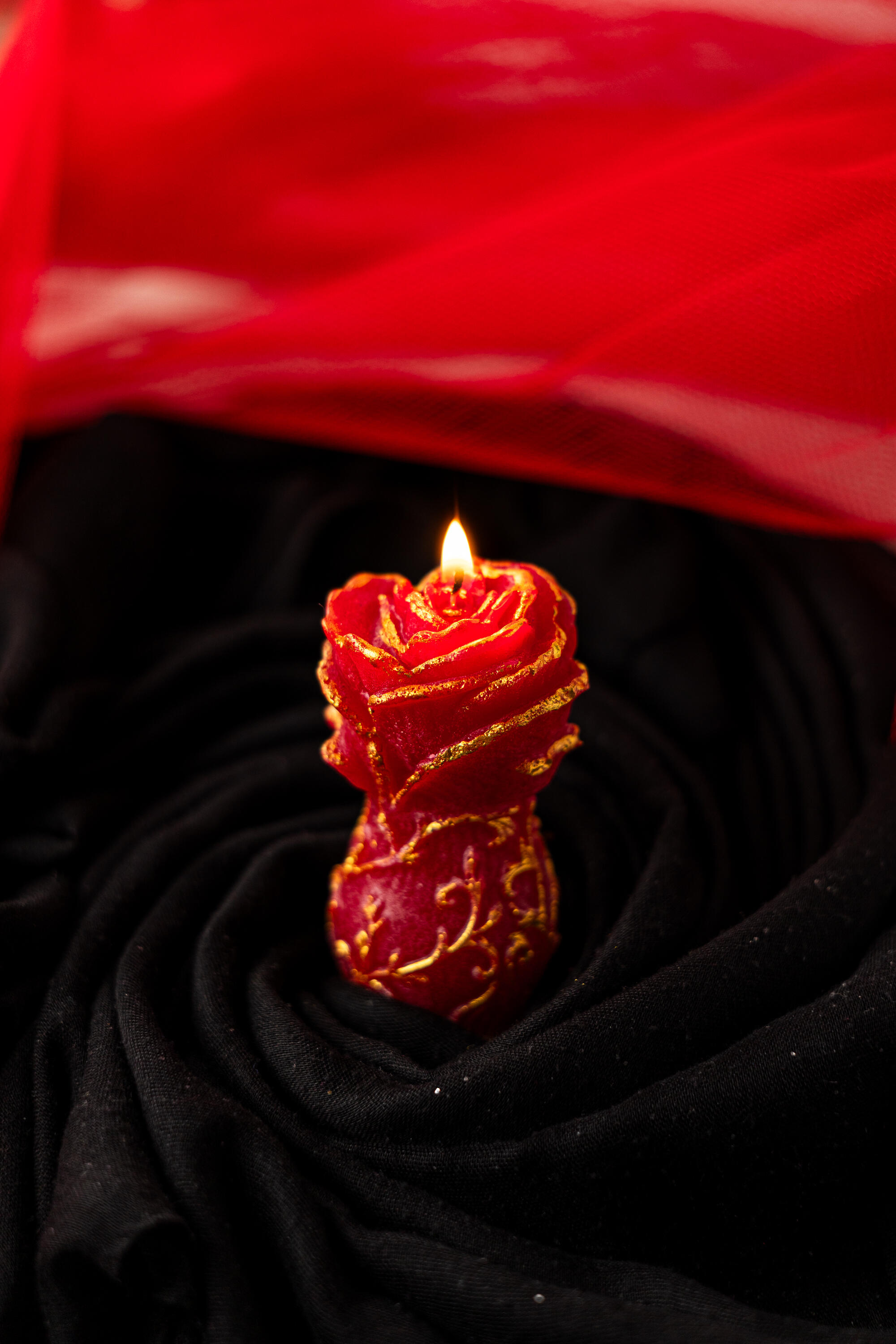 Bezvremenski simbol strasti, ovjekovječen u vosku.Intenzivna crvena nijansa, naglašena ručno iscrtanim zlatnim detaljima, stvara dramatičan i raskošan vizuelni doživljaj. Svaka latica nosi pečat pažljive izrade, pretvarajući klasičnu formu ruže u ekspresivan umjetnički komad.Vatreni akcent koji neprikosnoveno dominira prostorom.* Mirisna porodica: Orijentalno-cvjetni