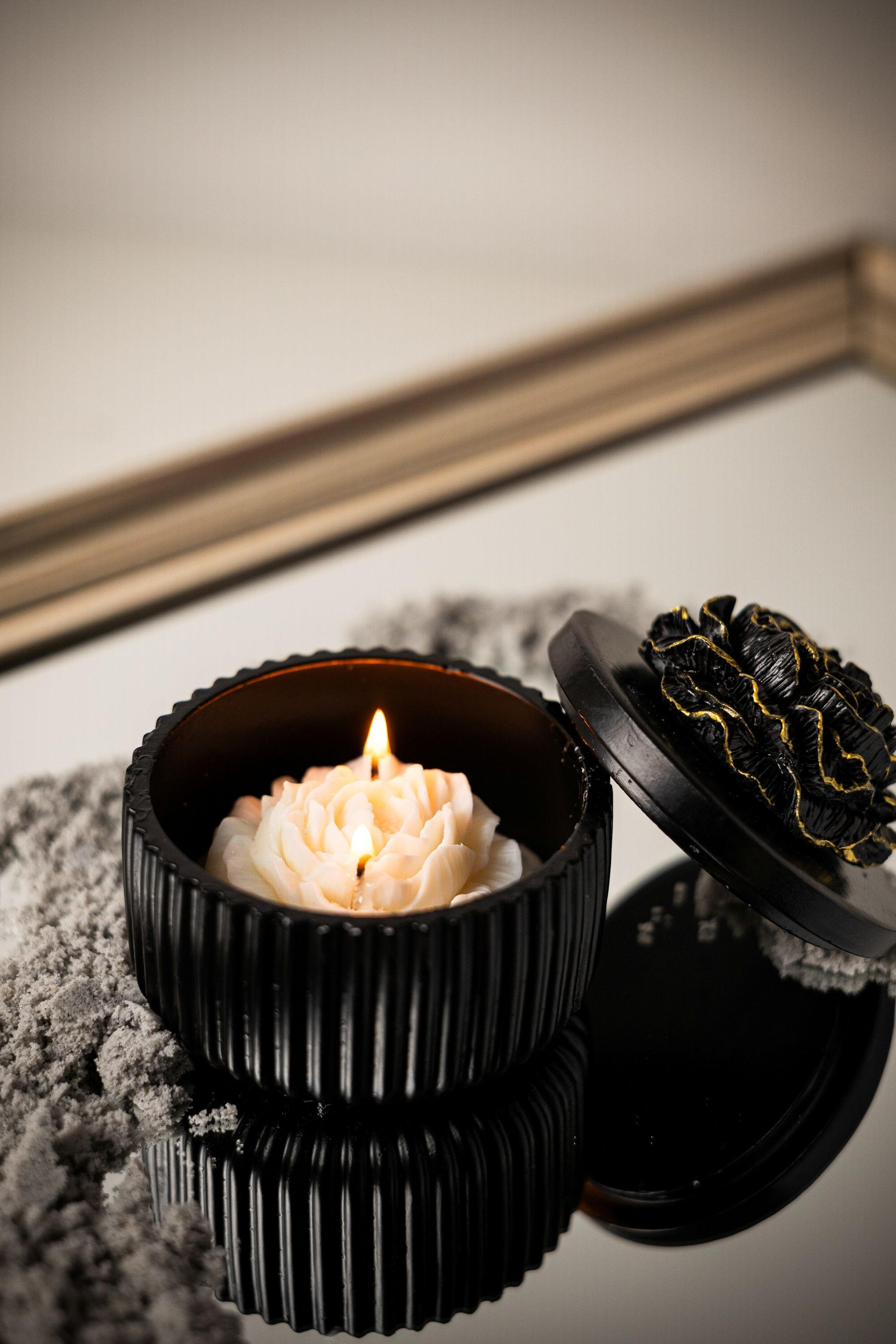 Kontrast tamne elegancije i nježne forme božura stvara komad koji odmah privlači pažnju.Crna reljefna posuda sa ručno oslikanim poklopcem daje dubinu i karakter, dok unutrašnjost skriva toplinu i mir.Svijeća koja ne prati prostor — već ga definiše.Mirisna porodica: Orijentalno-cvjetni