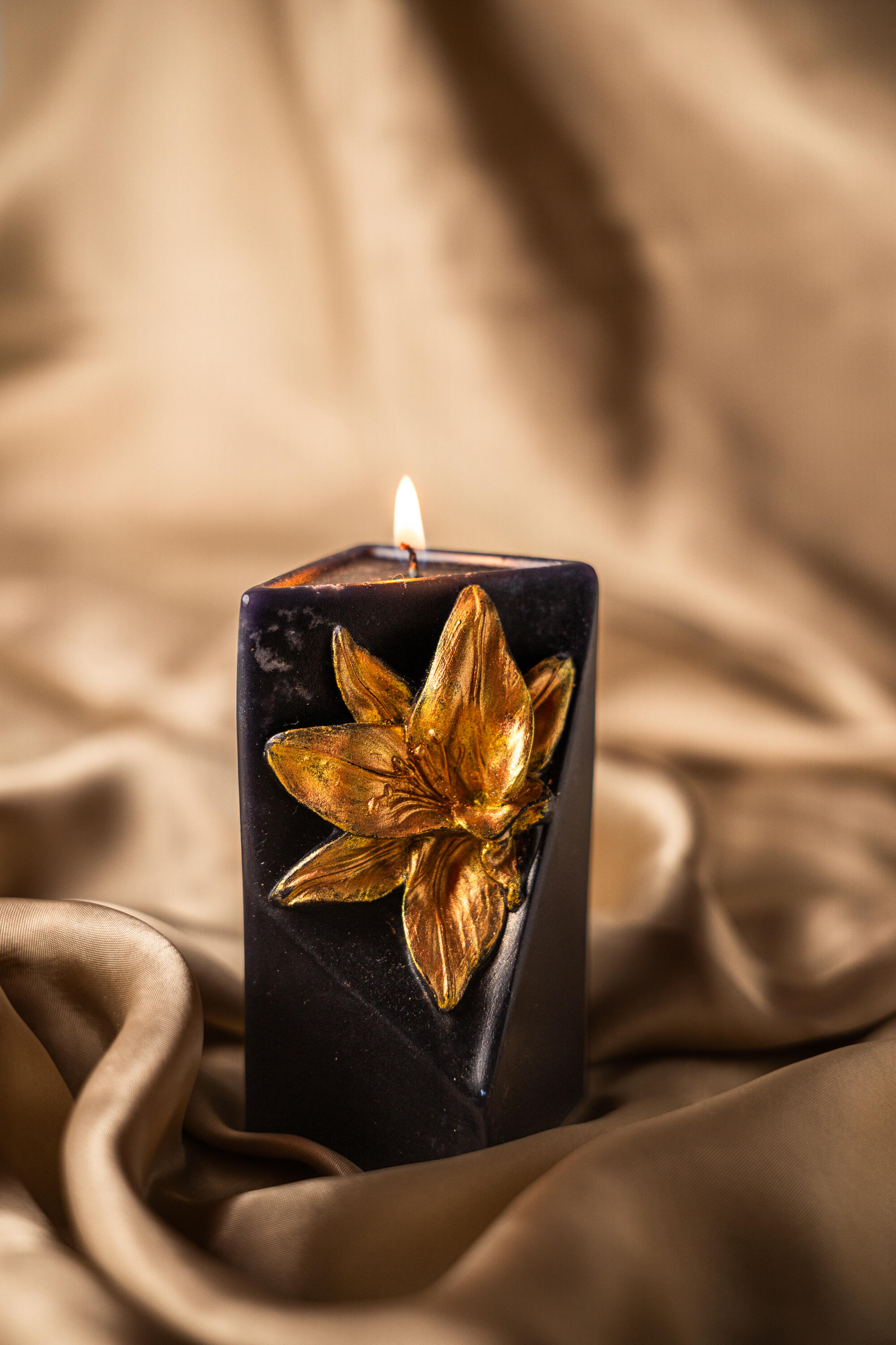 Dramatičan susret oštre geometrije i botaničke raskoši.Iz dubine tamnog voska izranja ručno pozlaćeni ljiljan, stvarajući savršen vizuelni balans između moderne strogosti i bezvremenske elegancije. Svaki ugao ove svijeće dizajniran je da uhvati svjetlost, pretvarajući je u hipnotišući umjetnički iskaz.Odvažan karakter za prostore koji slave beskompromisni luksuz i kada nije upaljena.Mirisna porodica: Vodeno-cvijetni